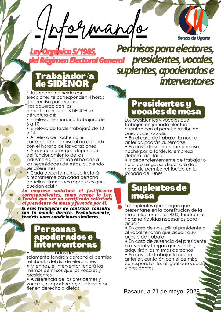 2023ko maiatzaren 21a. Hautesle, lehendakari, kide, ordezko, ahaldun eta kontu-hartzaileentzako baimenak.