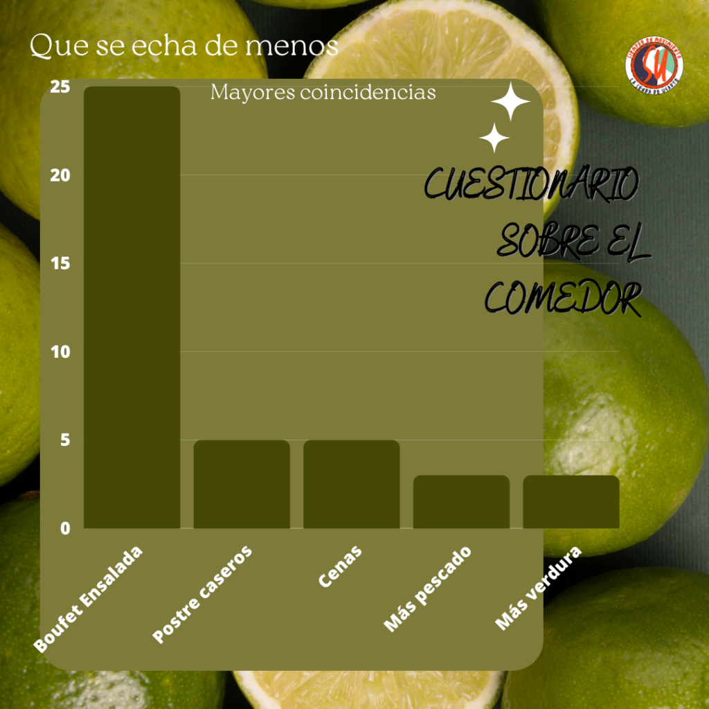 Erabiltzaileek, oro har, pandemia baino lehen kendu zen Entsaladetako bufetaren falta sumatzen dute. Zure entsalada prestatzeko aukera hori, lehen plater guztiz osasungarria baita. Badira, halaber, bat datozen erantzunak ere: etxean egindako postreak daude, afariekin batera, beste proposamen esanguratsuenetako batzuk baitira.