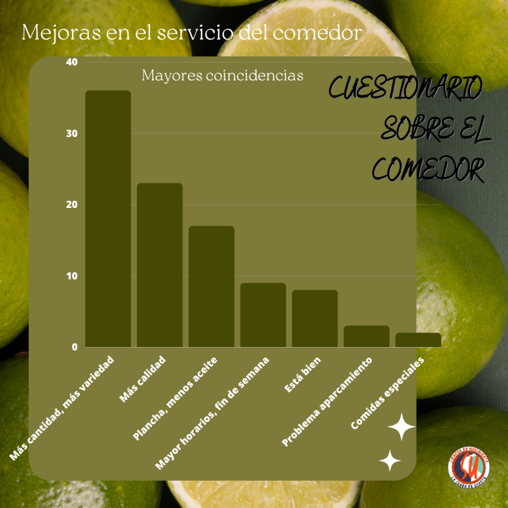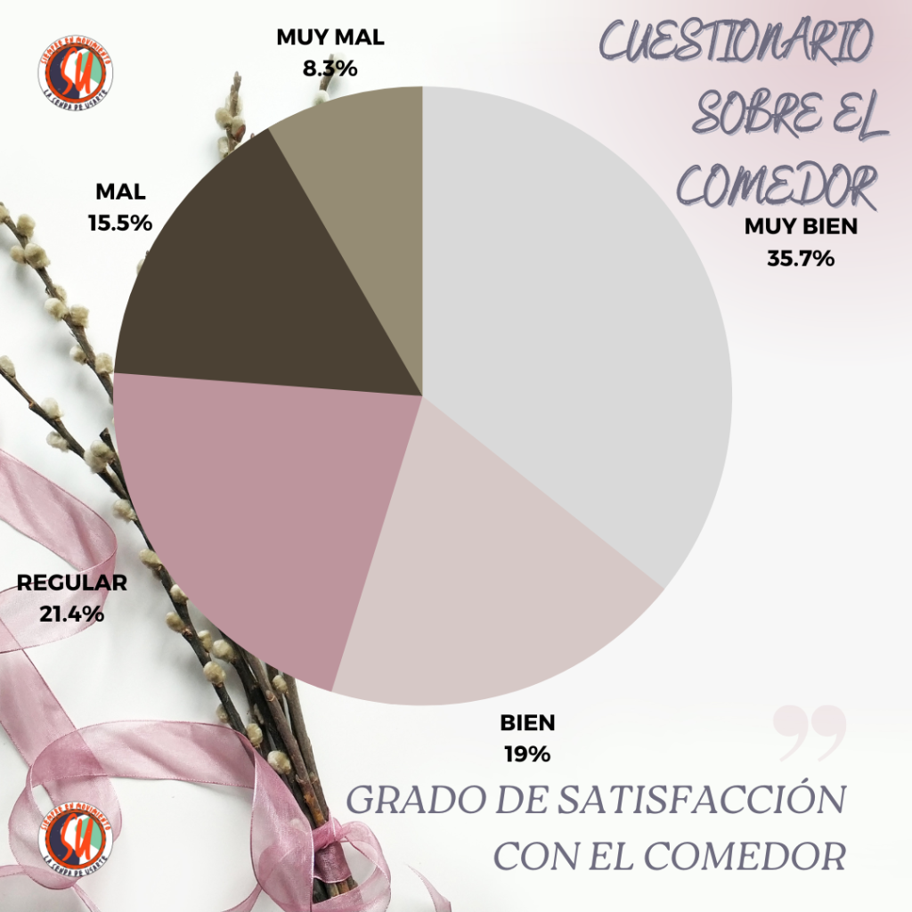Un 91% de las personas se muestran a favor del comedor como derecho. Sin embargo, solamente el 54´7% esta satisfecha con el servicio ofrecido