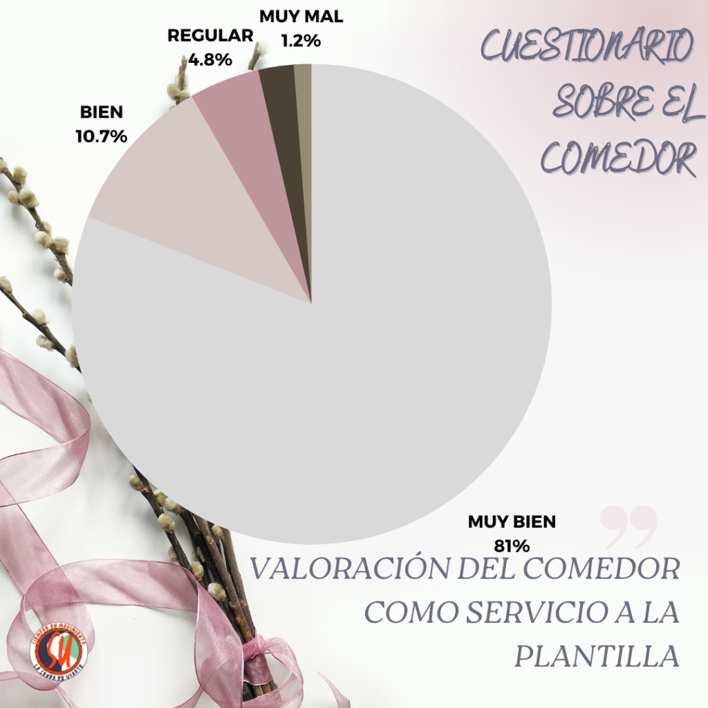 Azken bi hilabeteetan lantegiko jantokiari buruzko kontsulta egin diegu langileei. Alde batetik, online kontsultaren bidez eta, bestetik, paperean. Galdera-sorta egiteko bi moduak anonimoak izan dira, eta 84 erantzun eman dizkigute. Galdera-sortaren hasieran adierazi genuenez, ondorioek lagunduko digute Enpresa Osasungarriaren Batzordean gure proposamenari forma ematen eta jantokiko gure zerbitzuan hobekuntzak aldarrikatzen.